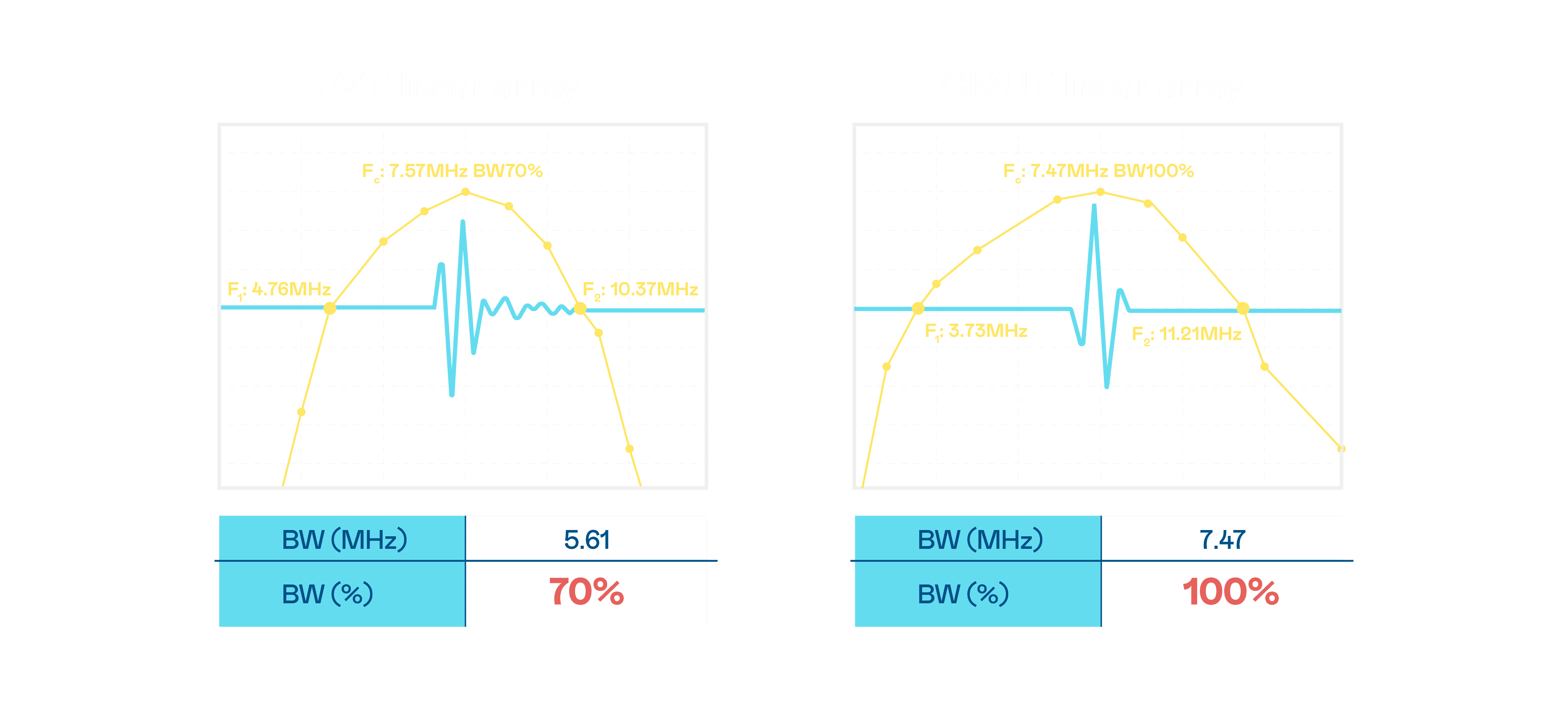 超音波影像的解析度高低,,首先取决于探头能发出的讯号频宽。。。。尊时凯龙 CMUT 可提供高清晰的超音波讯号,,,,提供高频宽、、高灵敏度、、、影像纹理细节更高的超音波影像,,,,协助医护人员缩短影像判读时间及利用精准的医疗影像进行诊断。。